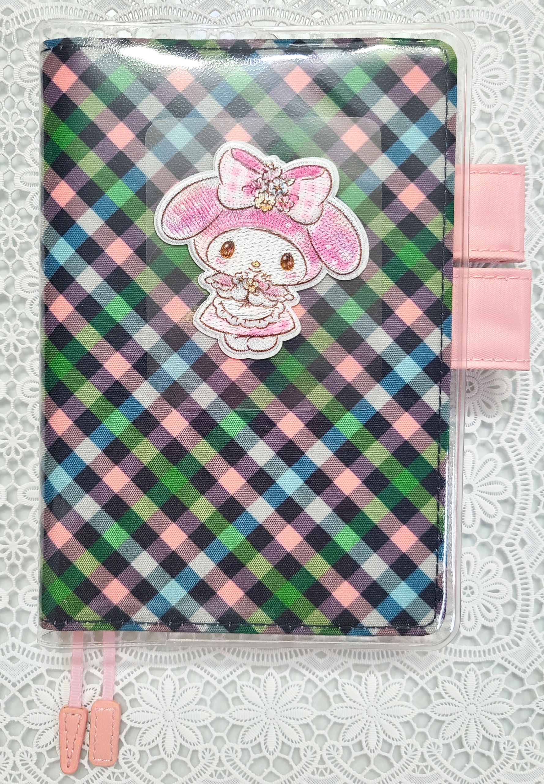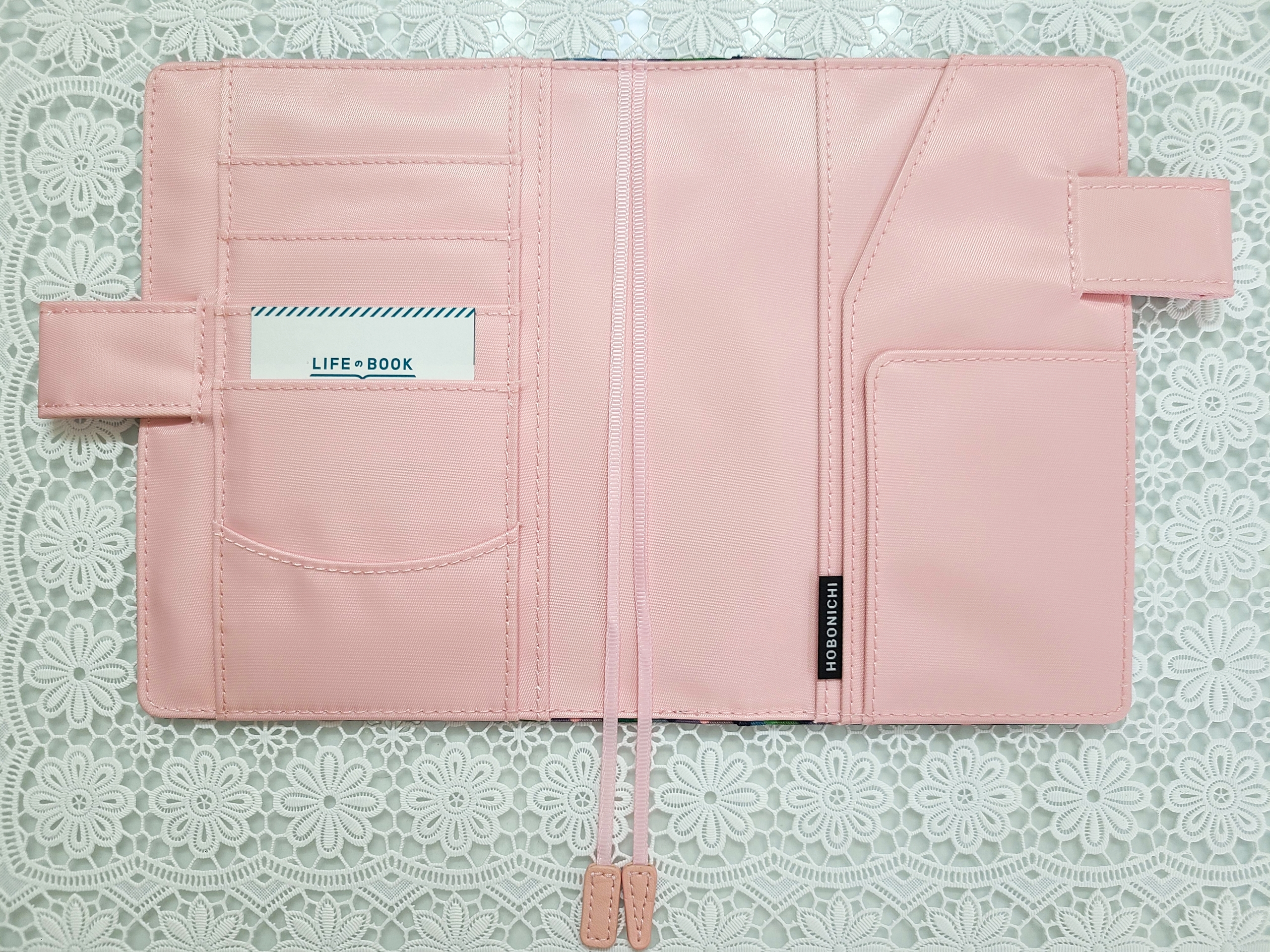 Its charming colors and sense of transparency evoke the image of traditional bonbon candies, but the black background keeps it from being too sweet. The cover interior is a cute pink.