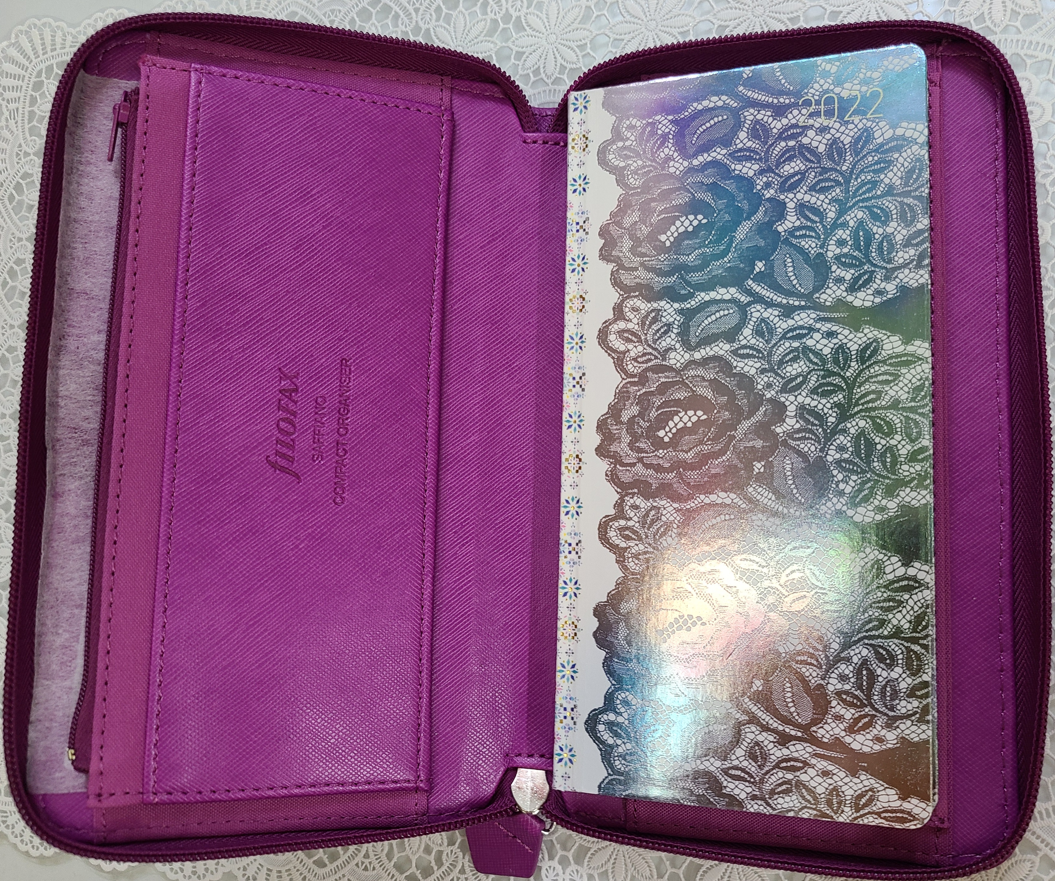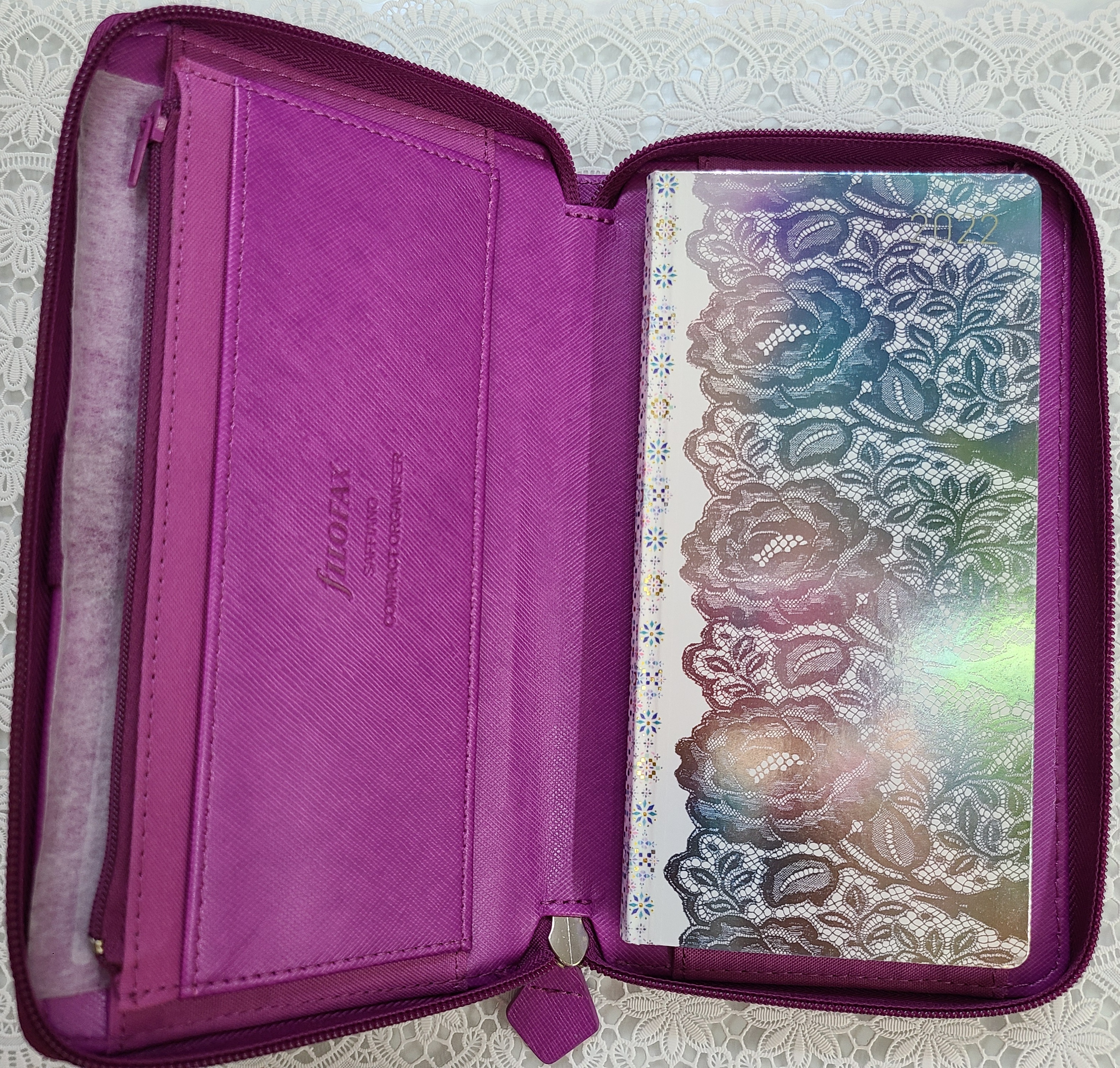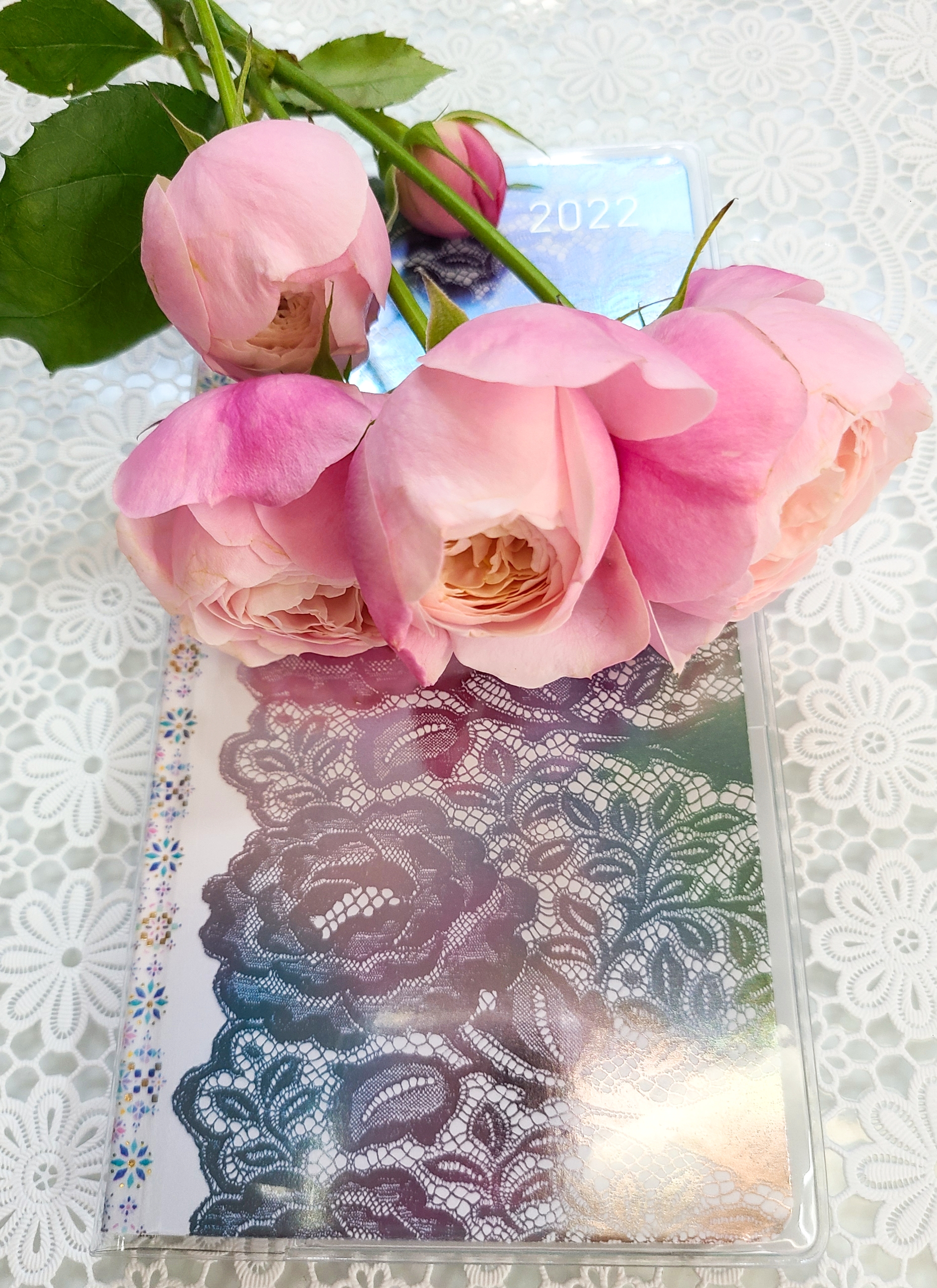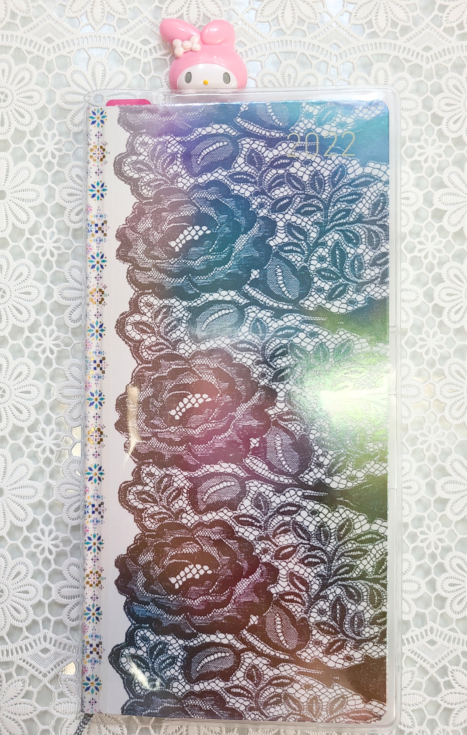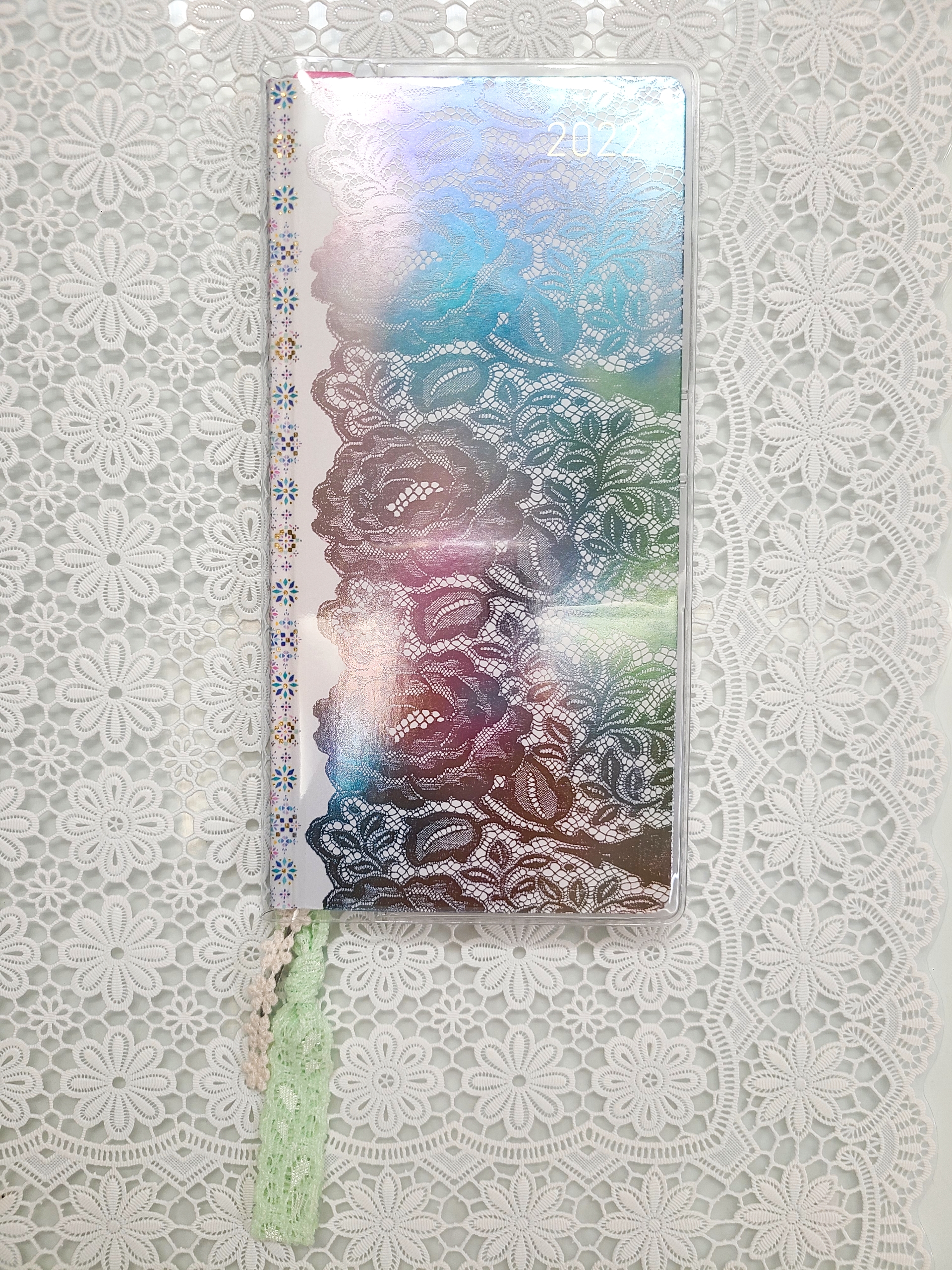 A floral lace pattern with a mature feel is printed on the front cover. The intricate lace and the sparkle of the gradation are expressed with inline foil printing.