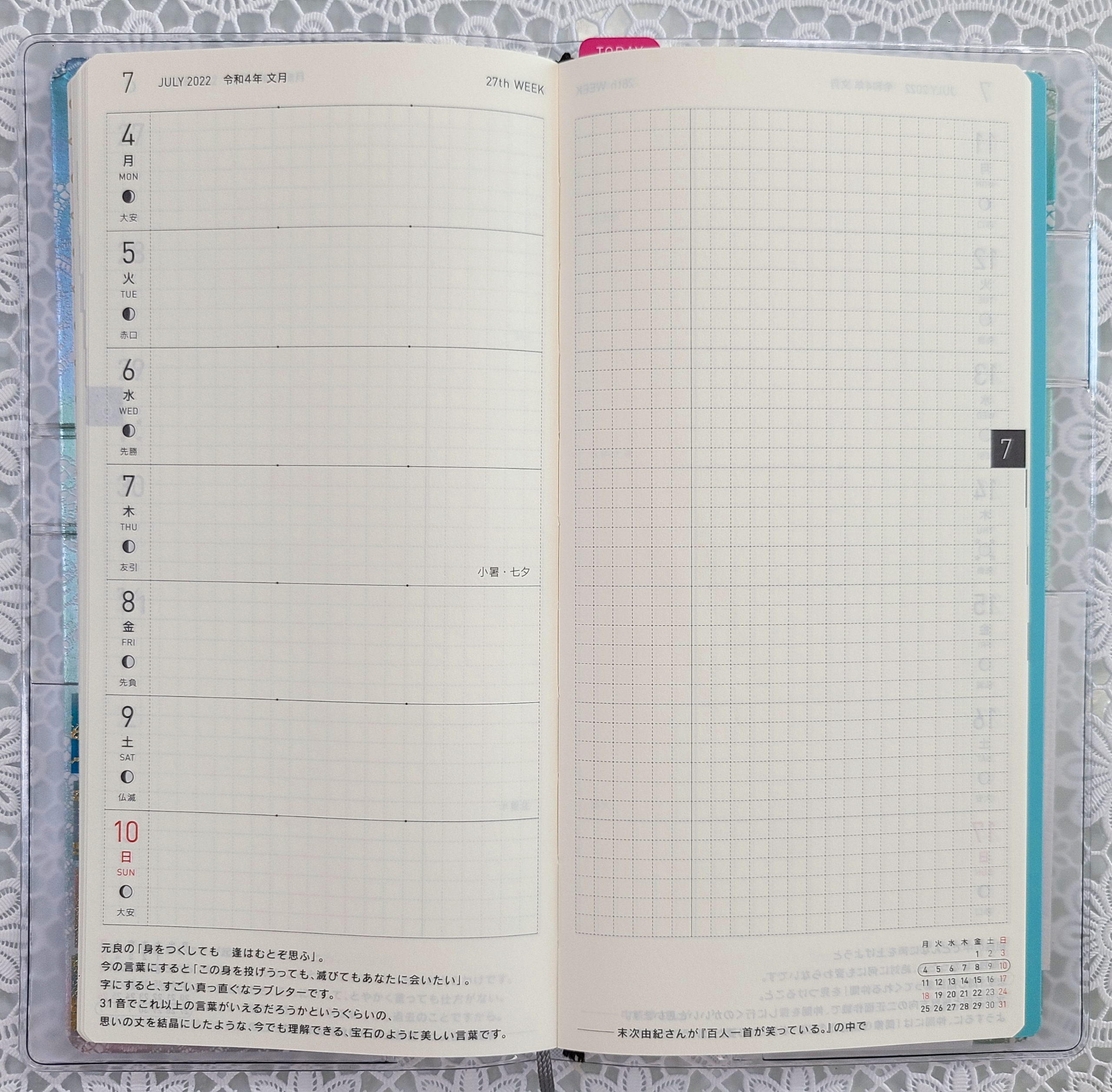 When you order this Hobonichi Techo Weeks, you’ll receive a clear, adhesive corner pocket you can stick anywhere you like.