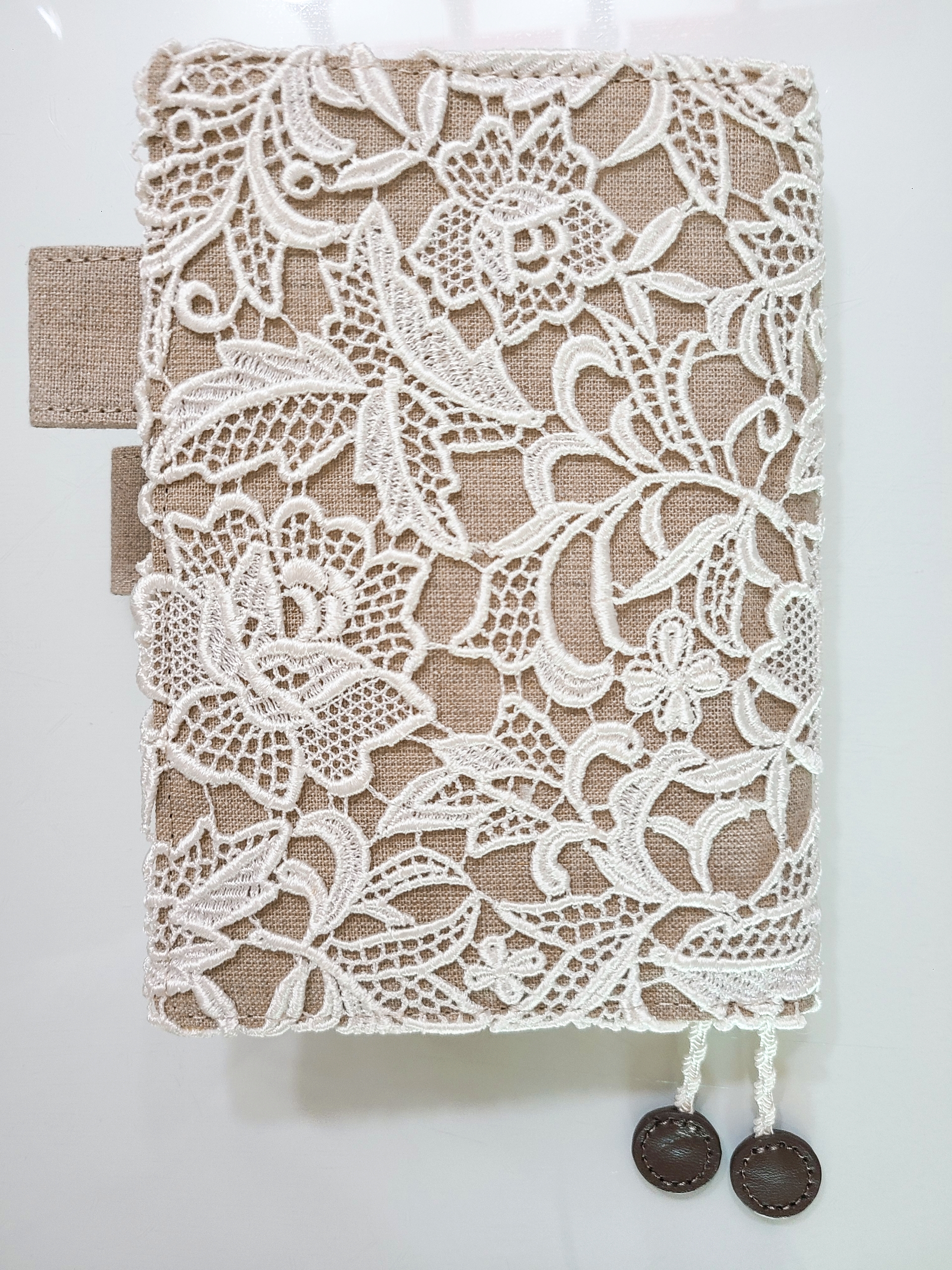 The roots of lace are thought to reach all the way back into pre-era BC. There are countless numbers of styles, so we wanted to take advantage of this special opportunity and pick out a quintessential design by a lace maker with over 80 years of history. The cover is made by overlaying a natural linen material with a separate layer of lace.