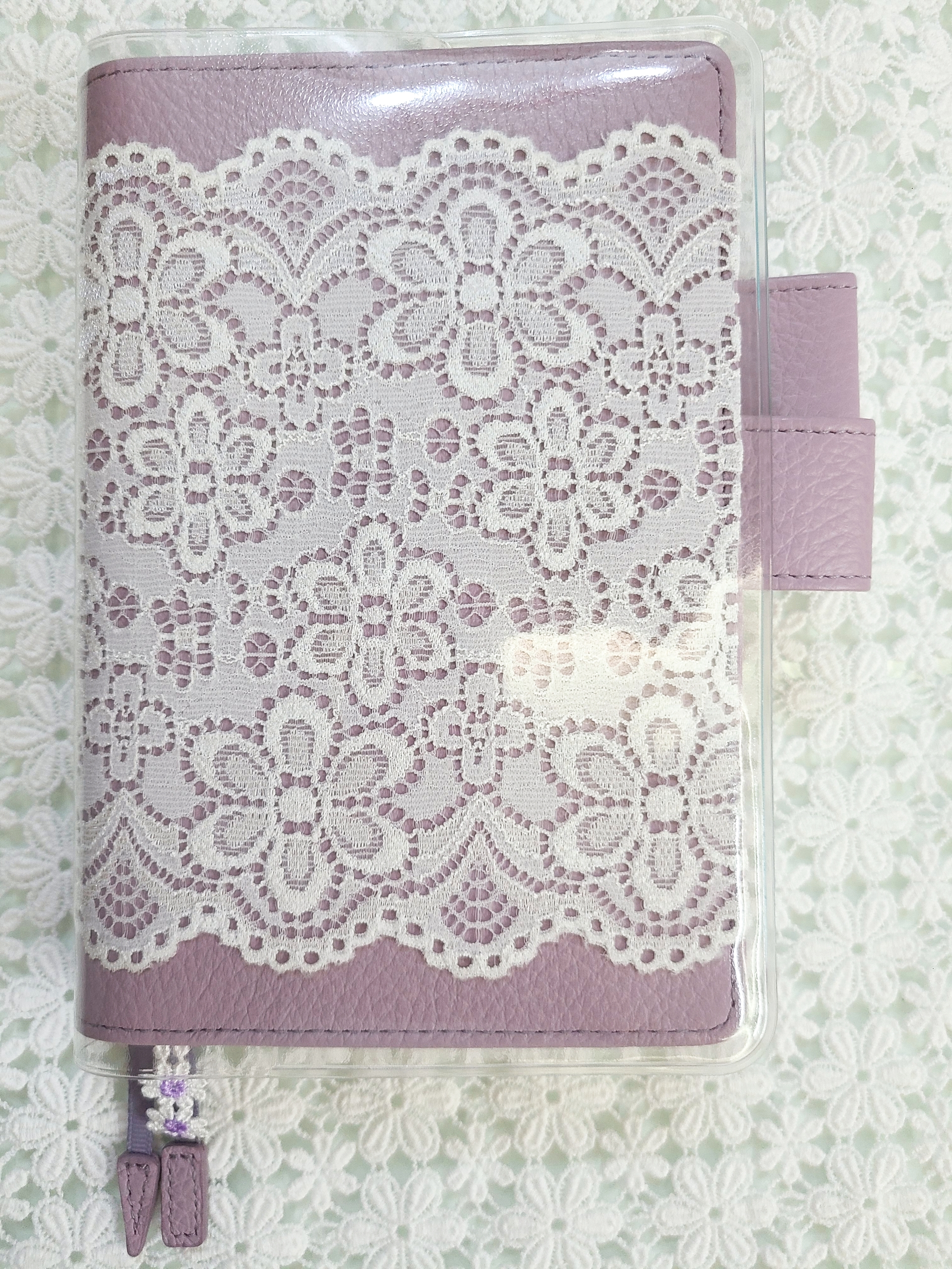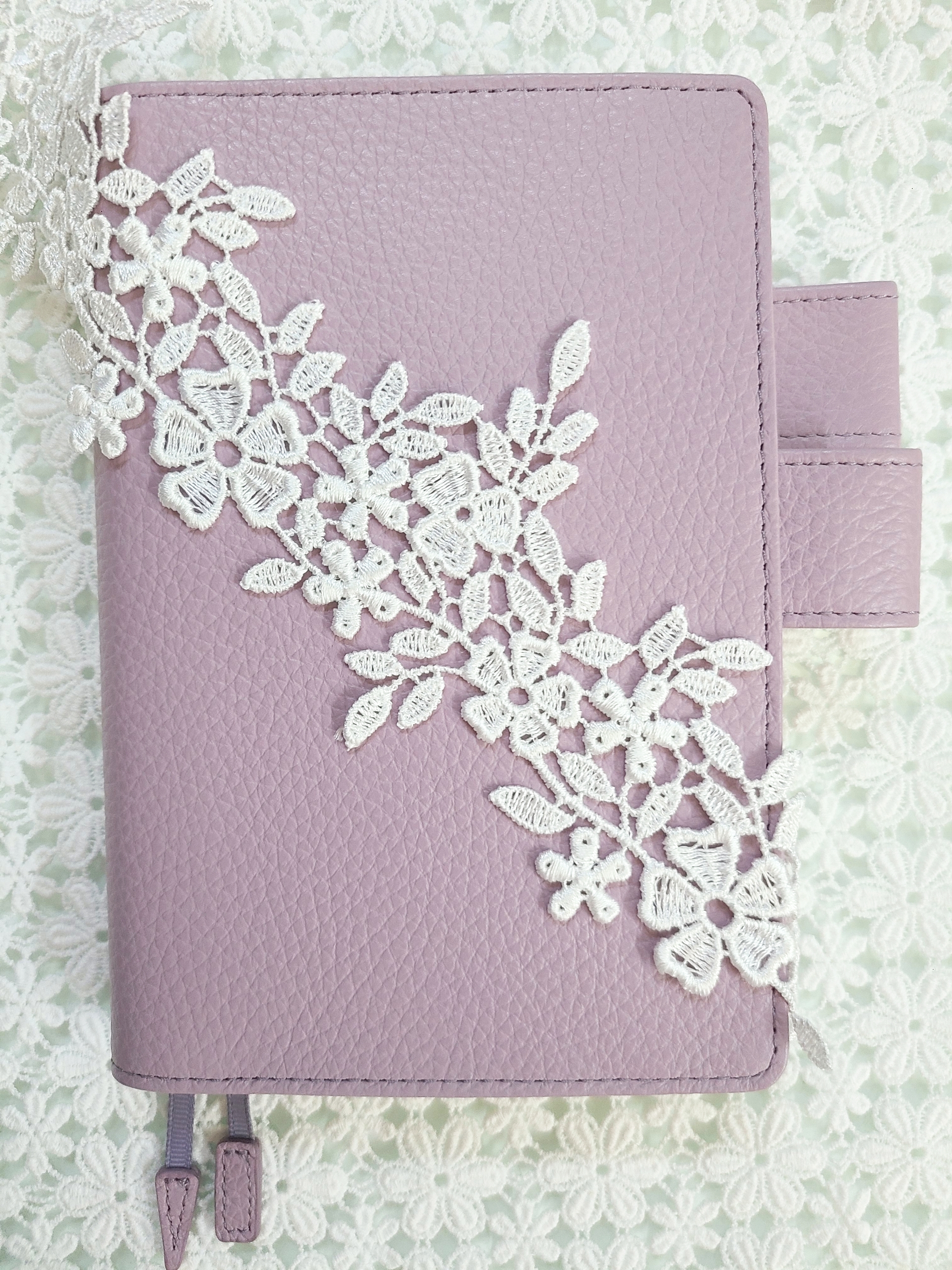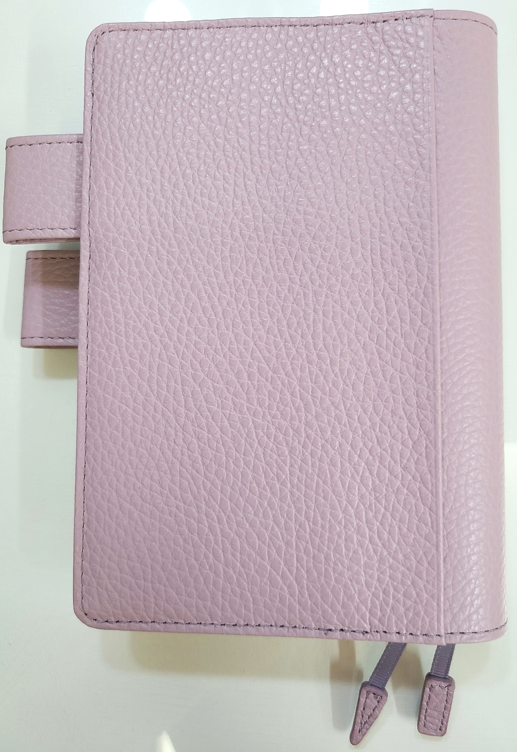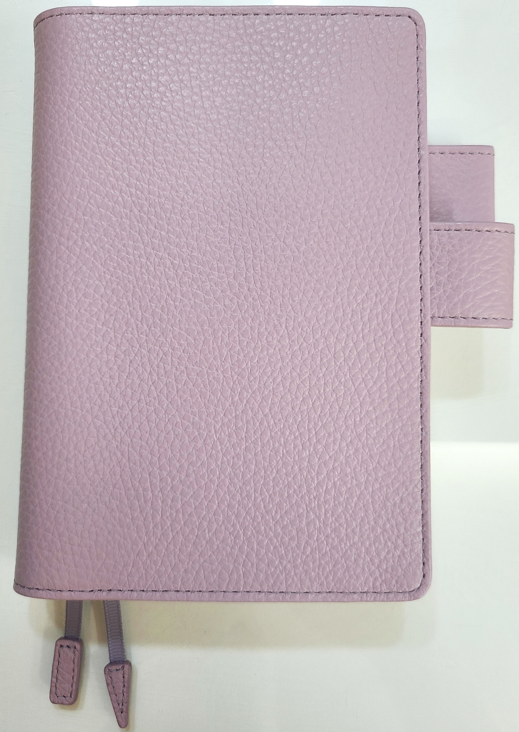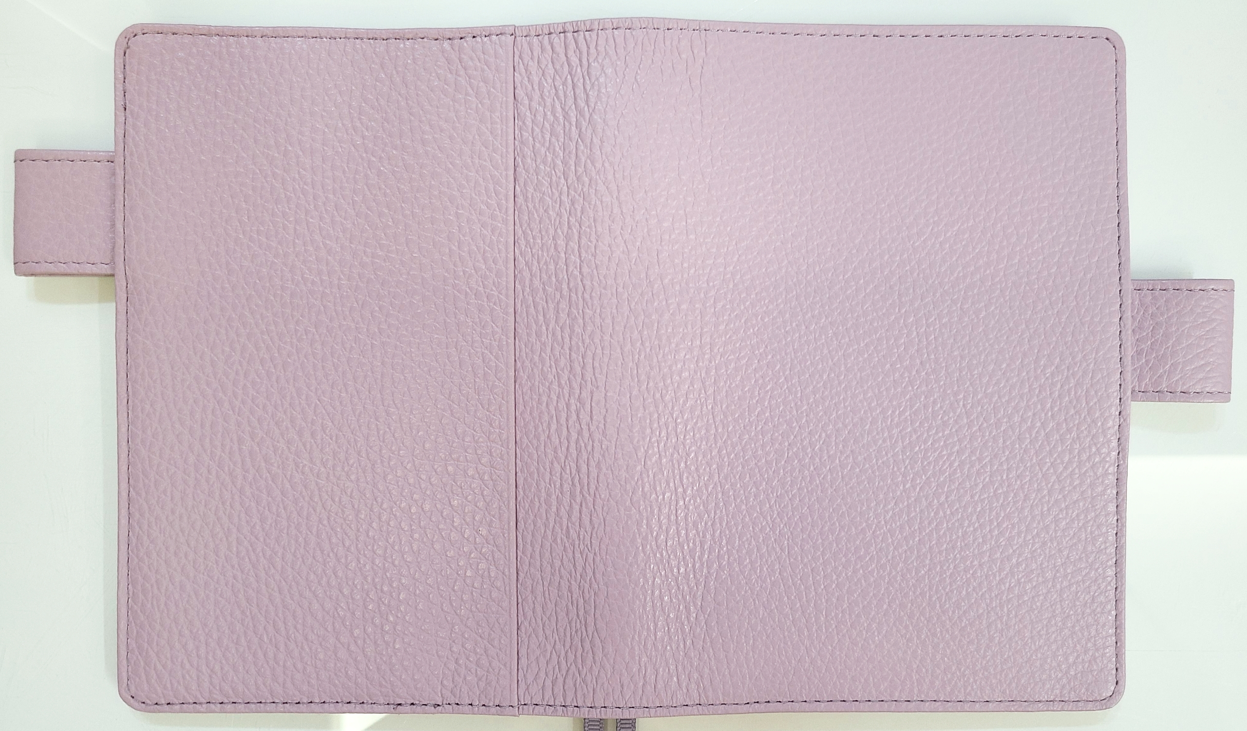 This is an elegant leather cover reminiscent of lilacs that bloom in spring. It’s a pale, smoky, nuanced color close to pale purple, but it also has a tinge of pink. It uses high-quality Italian leather that is soft to the touch. The surface is finely textured.