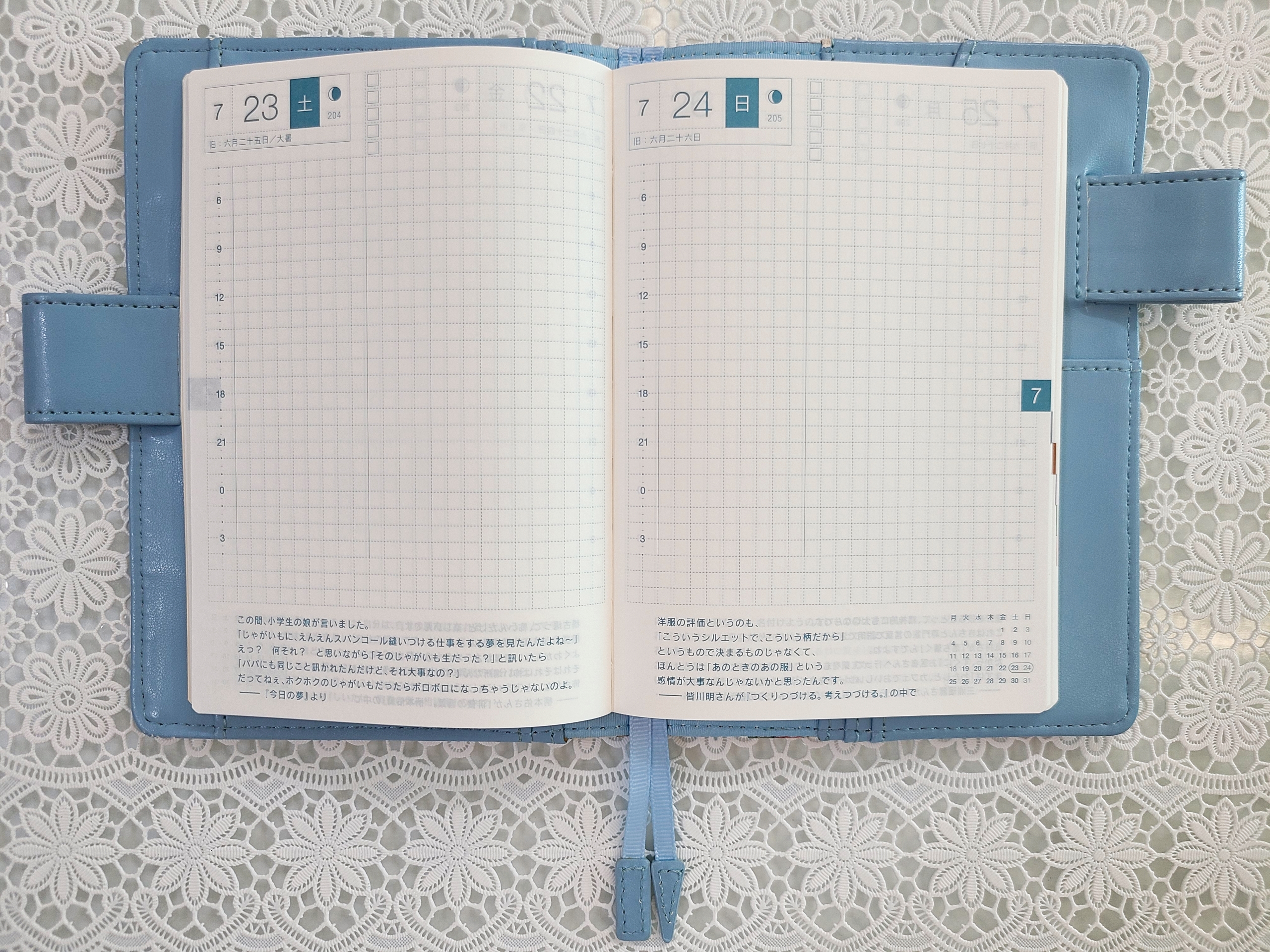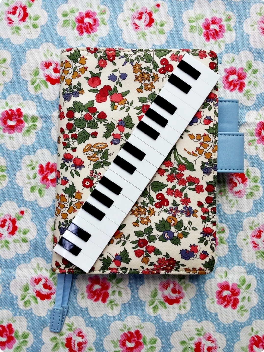 The light blue interior and pen holder provide a calm accent to the intricate, striking design.